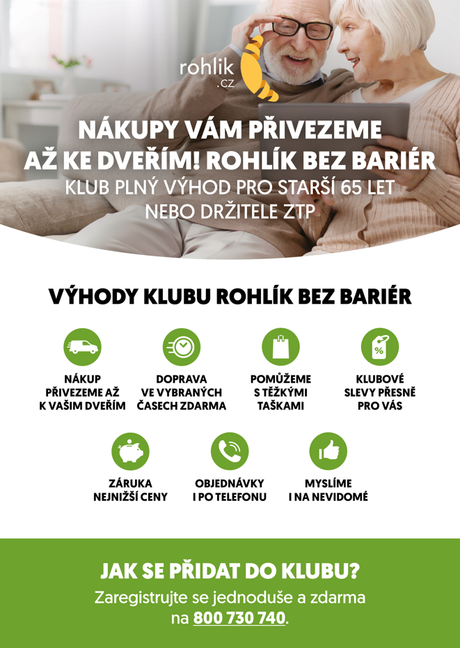Pro ty, kteří to potřebují nejvíce, máme programy jako klub Rohlíček pro rodiny s dětmi do 12 let, nebo Rohlík bez bariér pro seniory, či držitele průkazu ZTP. Tyto kluby jsou samozřejmě zdarma a nabízí spoustu výhod, jako dopravu zdarma, slevy na vybrané produkty, a pro seniory, kteří nemají internet, nebo si třeba úplně nerozumí s technikou, nabízíme možnost telefonických objednávek na čísle +420800730740 .
