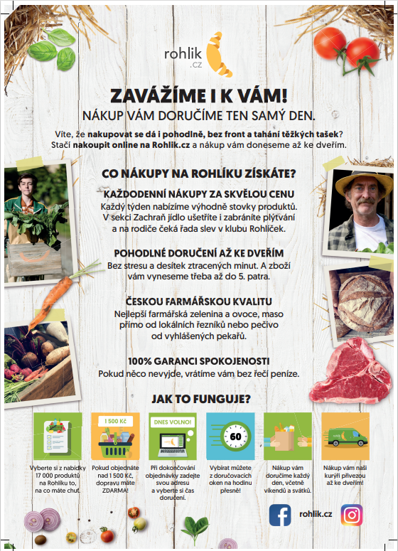 mám pro Vás dobrou zprávu – v minulých dnech jsme začali rozvážet nákupy z Rohlik.cz i do Veselíčka. Díky tomu si mohou vaši obyvatelé teď jednoduše a rychle nakoupit online a my jim jejich nákup do pár hodin přivezeme až ke dveřím, dokonce i během víkendů a svátků.